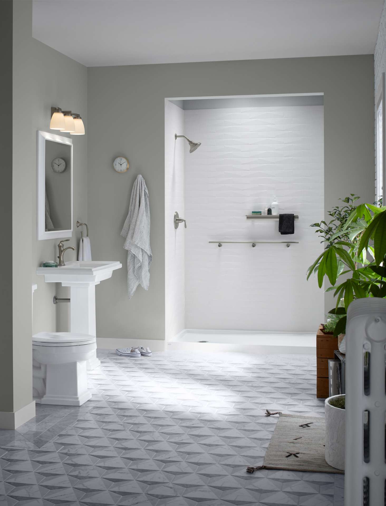 Renuity's walk-in showers offer an open, streamlined bathing layout that improves maneuverability and reduces the need to step over a tall tub edge....