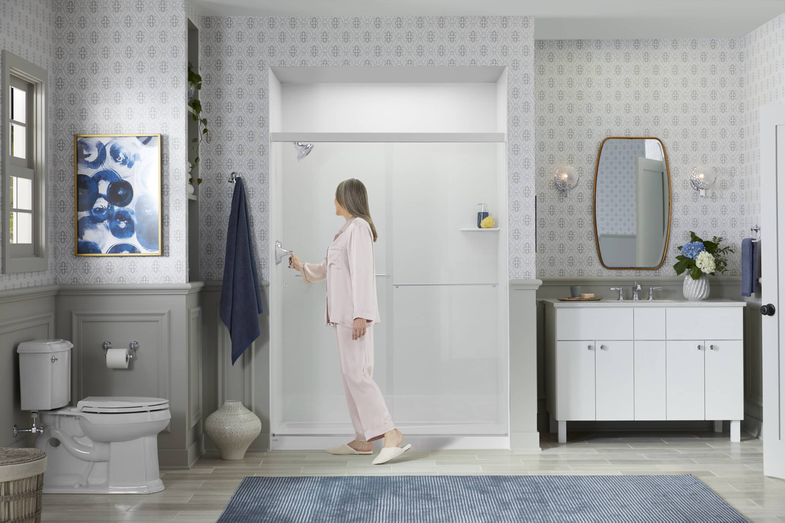 Discover customizable KOHLER® LuxStone® showers crafted from crushed stone and engineered for timeless elegance, strength, and everyday comfort.